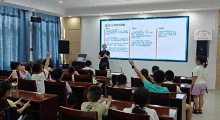 活动中,司法所工作人员结合青少年生活实际,选取盗窃、校园霸凌、防拐卖等与孩子们密切相关的法律知识,通过通俗易懂的语言进行讲解。课堂上,工作人员以真实案例为切入点,分析未成年人常见违法犯罪行为的危害及后果,引导孩子们明辨是非。同时,设置互动问答环节,鼓励孩子们主动提问,现场解答“被欺负了怎么办”“陌生人求助要帮忙吗”等问题,教会他们运用法律武器保护自己。