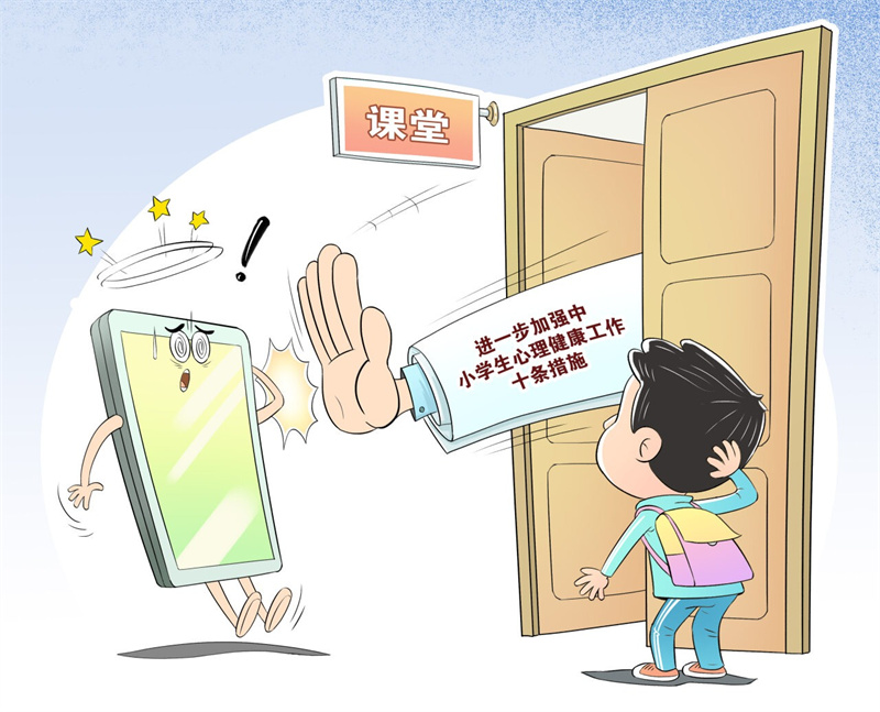 教育部近日出台《进一步加强中小学生心理健康工作十条措施》,旨在全面提升中小学生心理素质,促进身心健康成长。其中“培养学生健康用网习惯”措施中提出,规范管理学生带入学校的智能终端产品,严禁将手机等电子产品带入课堂。(据《中国教育报》10月25日报道)
