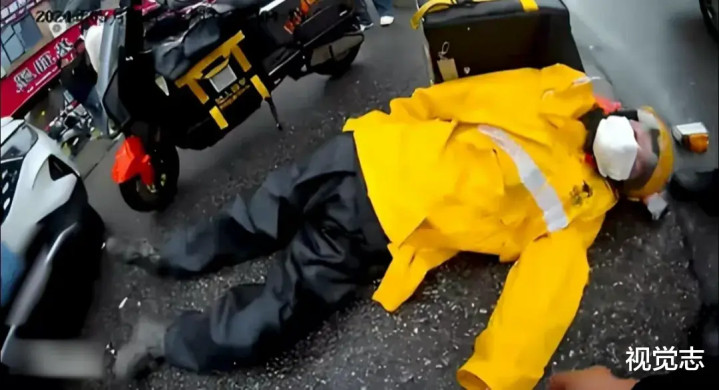 如果说店里打架是明面上的冲突,那么外卖员在马路上的奔波,更是风险陡增。
